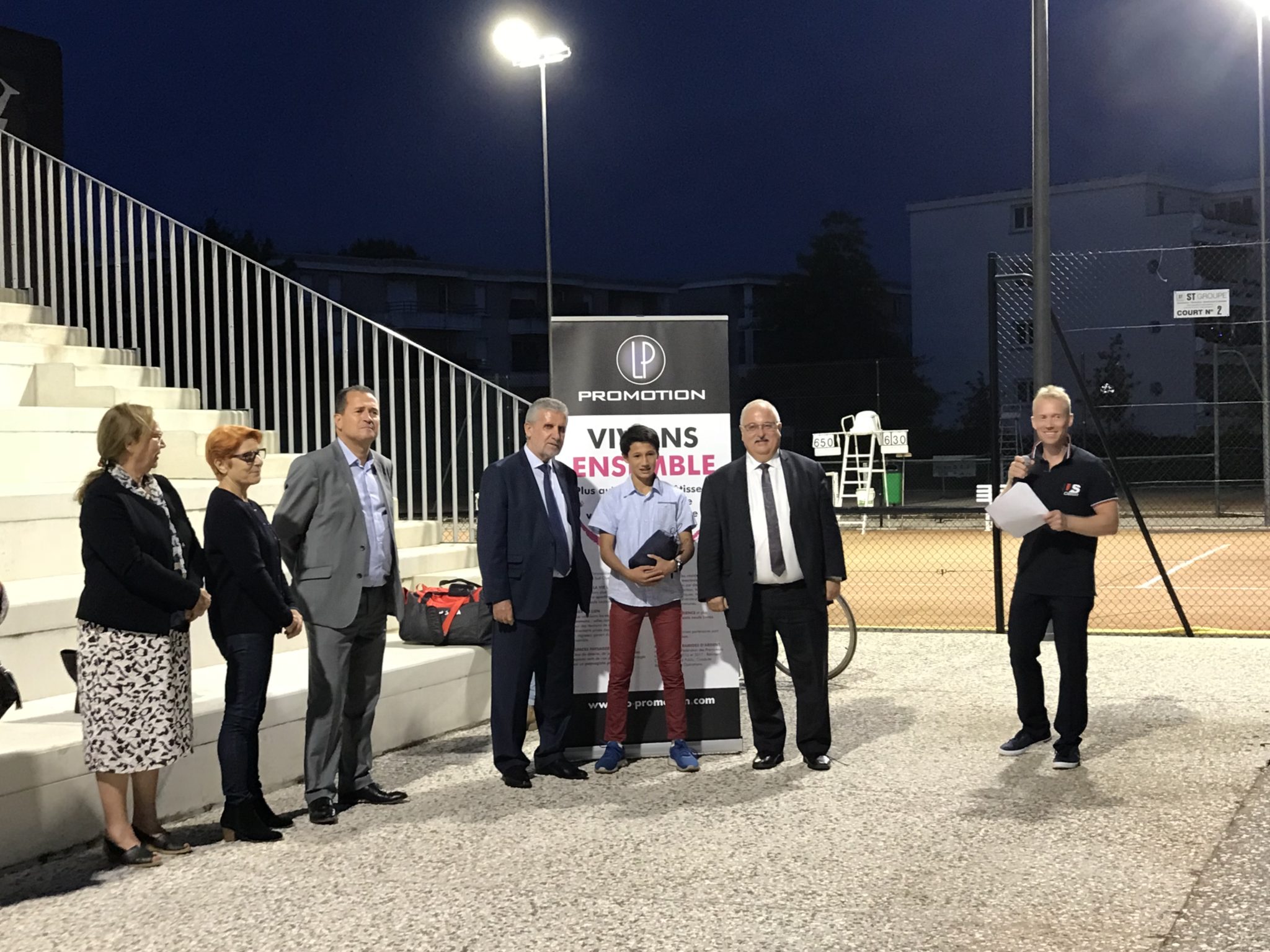 Remerciements tout d’abord à notre mécène LP Promotion… Au total, 24 athlètes été récompensés, ce vendredi 21 septembre, à l’occasion de la 2ème soirée des champions de l’US Cenon, pour leur participation aux championnats de France 1ère division de leurs disciplines respectives. Ils et elles sont issus de l’athlétisme, de la gymnastique sportive, du judo, du karaté, de la lutte et du tennis. Le trophée de la section a été attribué au foot qui poursuit sur une belle dynamique de « montées » et celui de l’entraîneur de l’année à Jean-Claude Lescalier pour l’œuvre de toute une vie de karaté au service des licenciés Cenonnais.